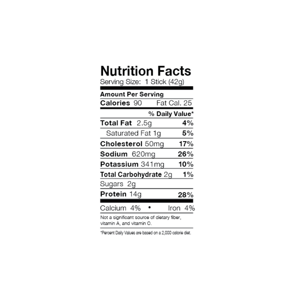 - 1 Box (10 Sticks): 10 - 42 gram (1.5 oz) meat sticks per box
