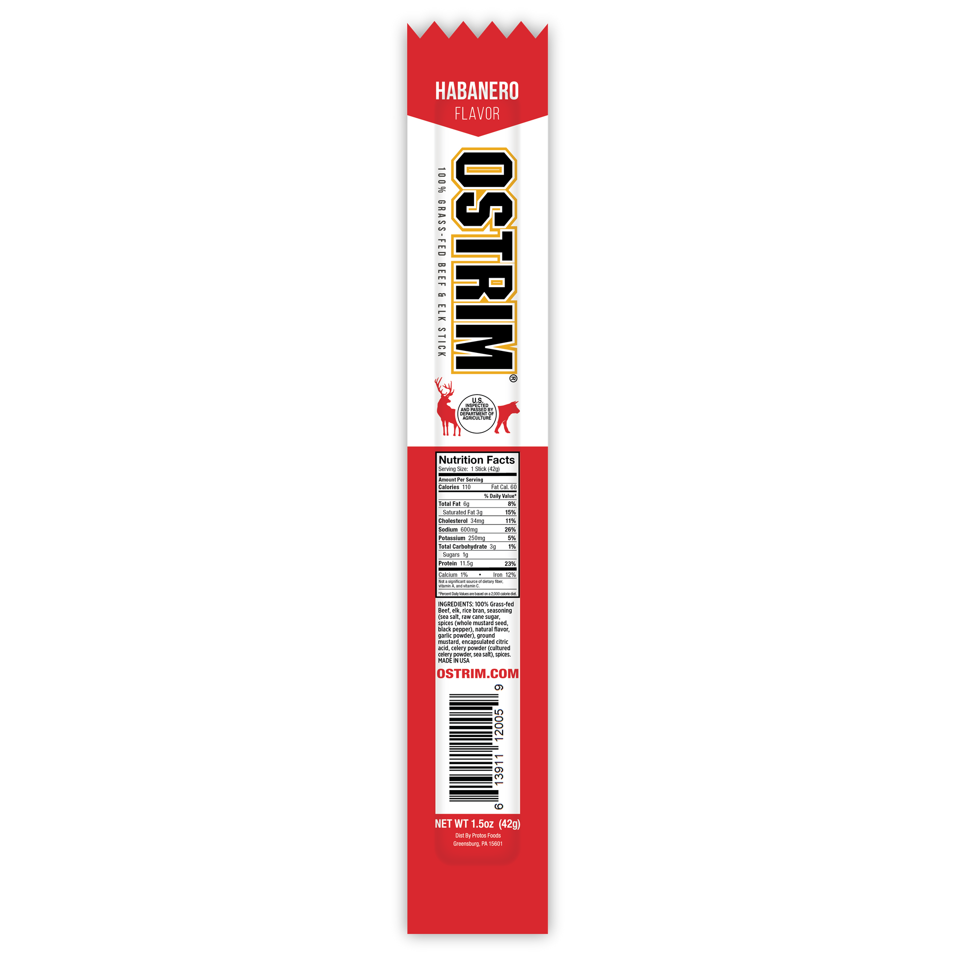 HABANERO OSTRIM GRASS-FED BEEF and ELK turns up the right amount mouthwatering heat in a guilt-free delicious meat stick. Our Chef’s incredible Habanero flavor takes a twist of Habanero pepper heat, with a touch of raw cane sugar sweetness paired up with a dash of priority spices for an amazing caribbean style flavor. It's one of our Chefs most authentic and best tasting meat snacks.