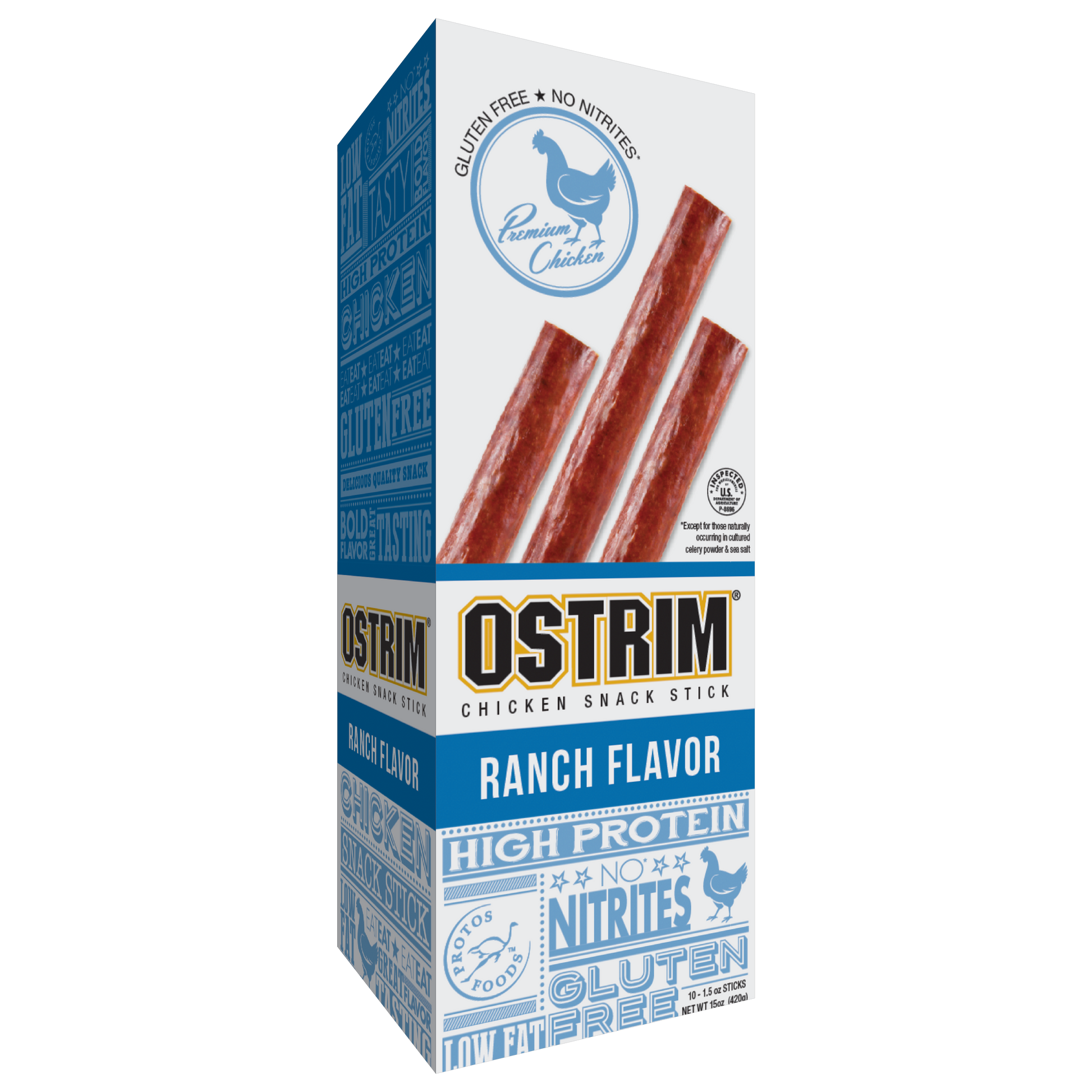 RANCH OSTRIM Chicken Sticks are a great tasting mild and pleasant combination of sweet butter, sour cream with a shot of red and green pepper seasoning. Enjoy the balance of all-natural tender and delicious chicken meat cooked slow and low to perfection with all natural ingredients.