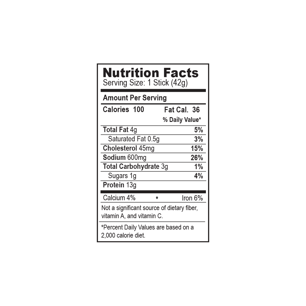 - 1 Box (10 Sticks): 10 - 42 gram (1.5 oz) meat sticks per box