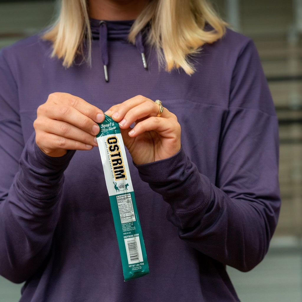 Buy a case of OSTRIM SWEET & SPICY GRASS-FED BEEF and ELK Sticks and share them with coworkers, family, or at the gym.