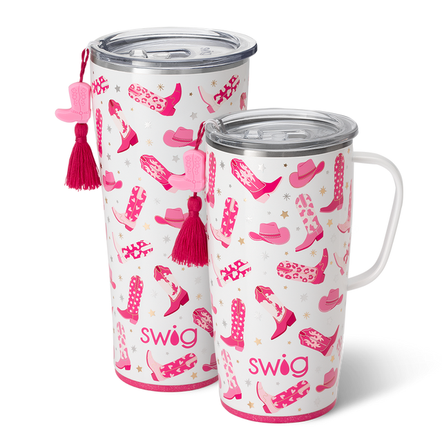 Quench your daily sips with this extra-large bundle! Our large 22oz Travel Mug gives you an extra boost of caffeine while our 32oz Tumbler guarantees hydration all day!