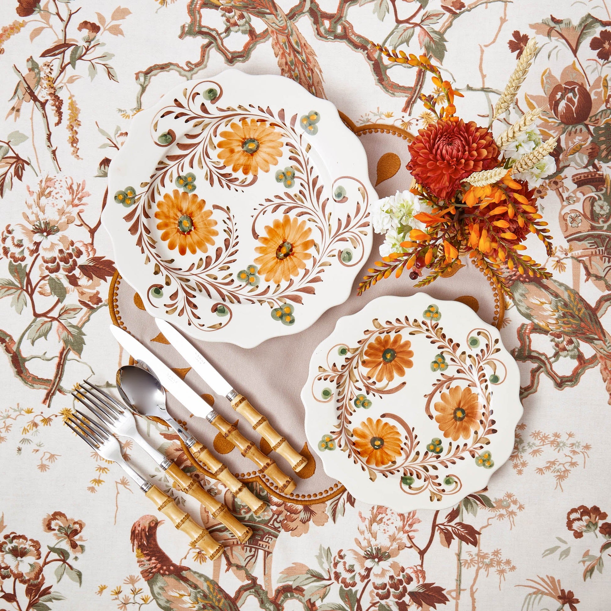 Our Autumn Flowers Dinner Plates are a sensational backdrop for your culinary creations this Fall. Each plate is designed with an intricate scalloped rim and looks perfect when paired with our matching starter plates.