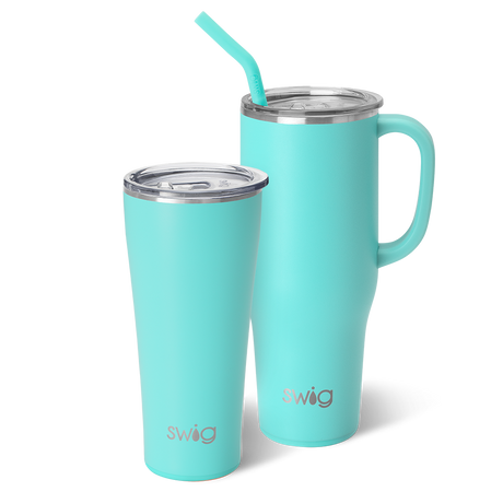 Hydrating has never been easier with our 40oz Insulated Mega Mug! A cup holder-friendly frame, a comfort-grip handle, and a plastic straw with a silicone flexi-tip all come together to create your new favorite Swig.