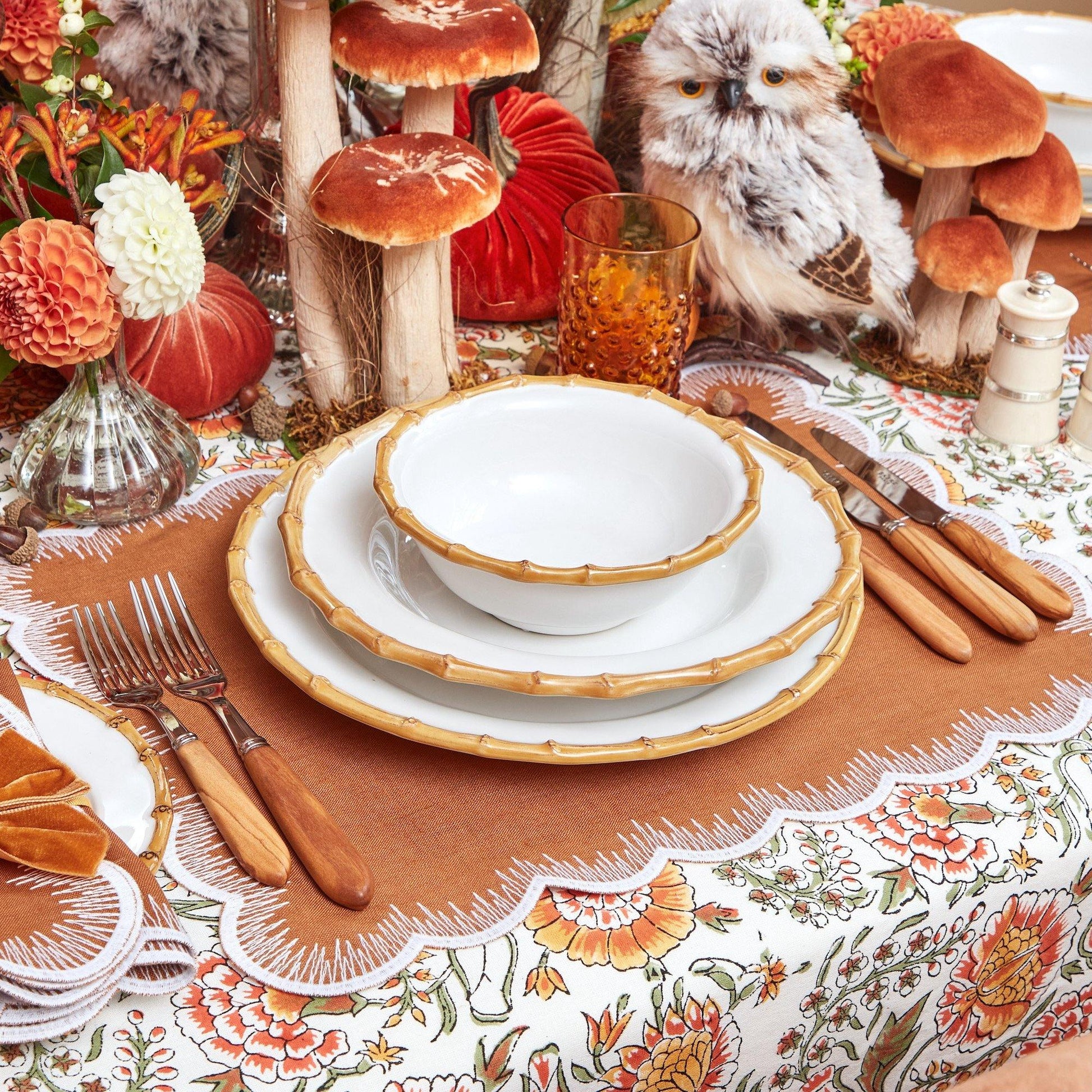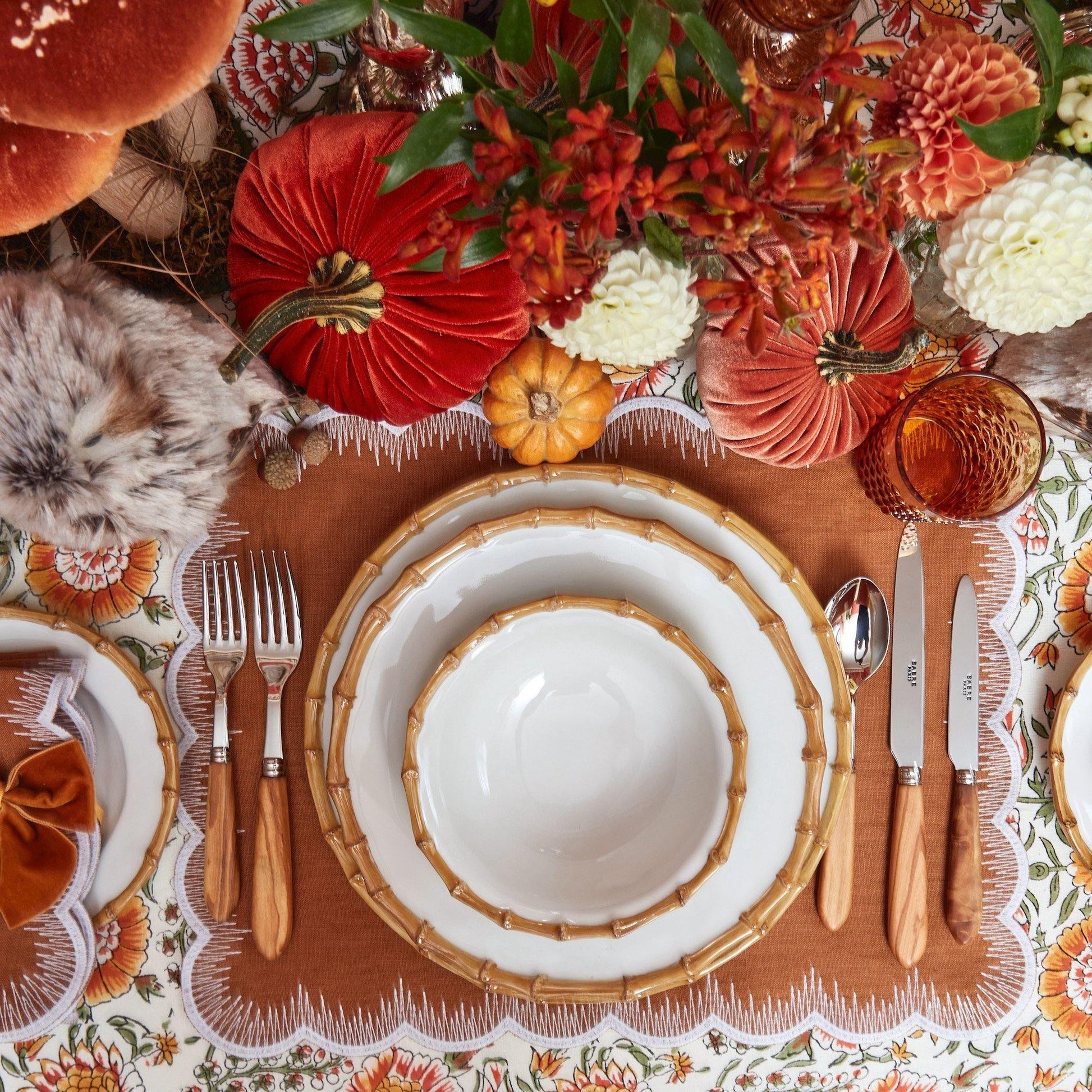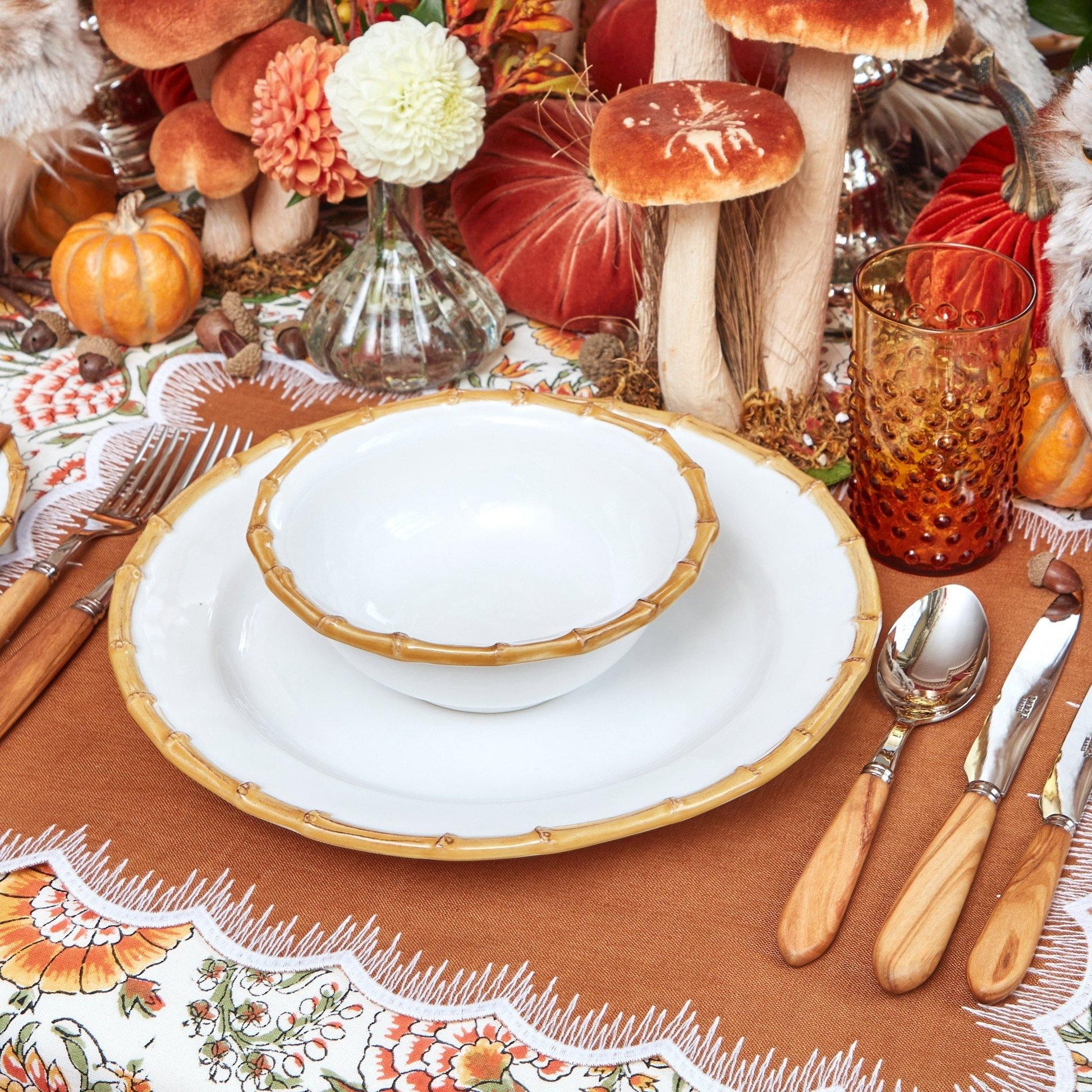 These beautiful bowls are accompanied by the Nancy Bamboo Dinner Plate, Caramel Isabella Linens and also pair beautifully with our Olive Wood Cutlery.