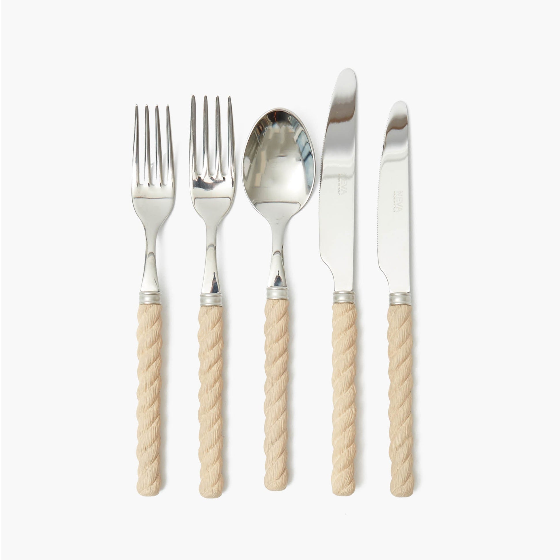 Sign off your table settings with our sleek Rope Cutlery Set. Inspired by the natural colour palette of rattan and rope, these pieces are sure to suit both summer and winter Tablescapes.