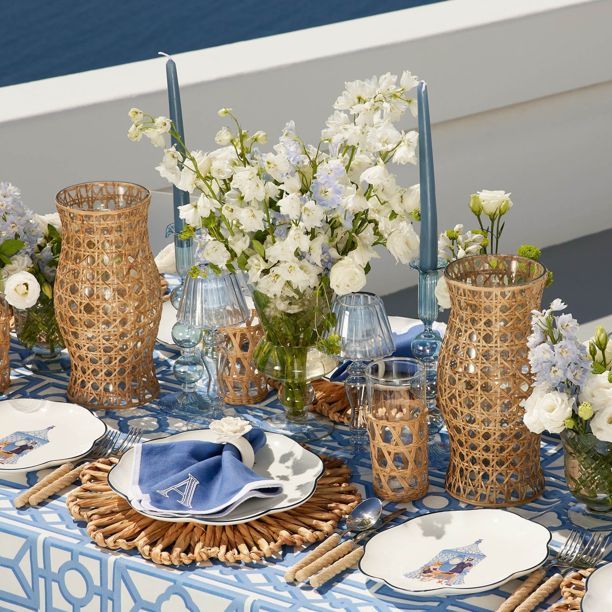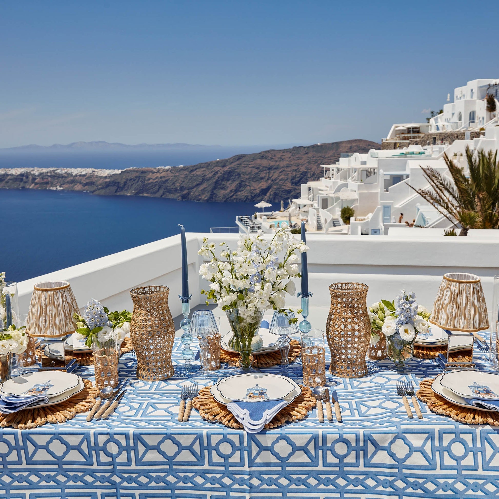 Complete your coastal charm with our Theodora Pattern Dinner & Starter Plates and Fleur Sand Placemats.